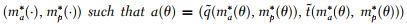Definition 6.1:A mechanism is a pair of message spaces Ma and Mp and a mapping g(-) from M = Ma x Mp into A, which writes as g˜(ma, mp) = (q˜(ma, mp), t˜(ma, mp)) for all pairs (ma, mp) belonging to M.