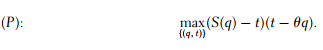To model this bargaining, we use the cooperative Nash bargaining solution with the principal and the agent having now equal weights in the negotiation. In state θ, they agree on a transfer t and production q, which are solutions to the following problem: