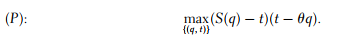 To model this bargaining, we use the cooperative Nash bargaining solution with the principal and the agent having now equal weights in the negotiation. In state θ, they agree on a transfer t and production q, which are solutions to the following problem: