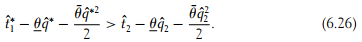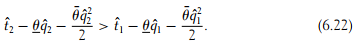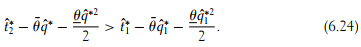 Importantly, the indifference curve of a (θ, θ¯)-agent going through the first-best allocation C∗ of a (θ, θ¯)-agent (dotted curve in figure 6.7) is tangent to and always above that of a (θ¯, θ)-agent.11 This means that one cannot find any allo- cation (tˆ, qˆ) such that condition (A) of definition 6.6 holds. In other words, the first-best allocation rule a∗(θ) is nonmonotonic in this bidimensional example. To see more precisely why it is so, note that any mechanism g˜(·) implementing the first-best allocation a∗(θ¯, θ) must be such that