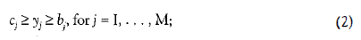 Let the various foods be numbered from 1 through N, and the vari-ous nutritional components from 1 through M. Let xi be the quantity of the ith food in the diet, yj be the total quantity of the jth nutritional component in the diet, and pi the price of the ith food. Let aij be the amount of the jth nutritional component in a unit quantity of the ith food; let bj be the minimum requirement of the jth nutritional component, and Cj the maximum allowance. (Some of the bj‘s may be zero, and some of the cj‘s infinite.) Then: