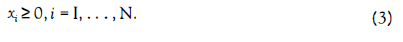 that is, the total quantity of the jth element must lie between bj and cj. The quantity of each food consumed must be non-negative, although it may be zero: