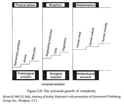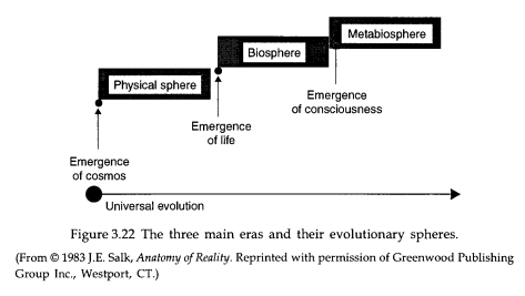 In the categorization of nature, Salk begins with a definition of the three main eras of the universal evolution wherein the different types of matter emerged. See Figure 3.21.