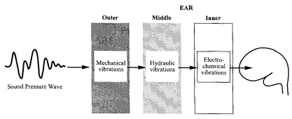 The first level consists of the acoustic pattern taken physically as vibrations in the air. The second level consists of the various phenomena in the inner ear and pertinent parts of the nervous system. The third represents the conversion of the information pattern by the brain into an experience of individual meaning.