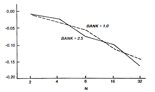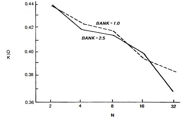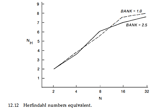 Figure 12. 2 shows average productivity at the end of the run as a function of initial concentration. Figure 12.3 shows the “average pro-ductivity gap” defined as th e geometric mean over time of the ratio of average productivity to latent prod uctivity, minus one. Both of these indices show that average productivity toward the end of the run (and apparently over a considerable part of the run) was lower when there were many firms than when there were few. Thus, the small-numbers cases were marked by a considerably higher ratio of average productivity to best- practice productivity than were the large-numbers cases. Since the initial productivity levels of all firms were the same under all initial conditions, average productivity apparently rose m ore rapidly and average production costs declined more rapidly in the small- numbers cases than in the large-numbers cases.