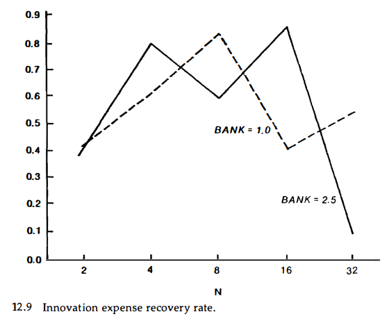With the vision of hindsight, we know that the parameter settings for this particular set of runs- in particular, the rate of growth of la tent productivity, the productivity of innovative R&D in terms of the probability of finding a new technique per dollar of expenditure , and the productivity of imitative R&D expenditure in terms of the proba bility of successful imitation per dollar- defined a regime in which innovative R&D is somewhat unprofitable on average. In Chapter 14 we will explore the conditions that determine whether or not innova tive R&D is profitable and the difference it makes to overall industry performance. But here, keeping in mind that the climate is not favor able to innovative R&D, we can ask two sets of questions.