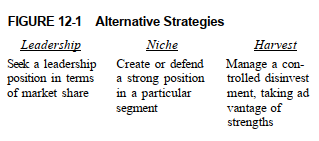 The leadership strategy is directed at taking advantage of a de-clining industry whose structure is such that the remaining firm or firms have the potential to reap above-average profitability and leadership is feasible vis-à-vis competitors. The firm aims at being either the only firm or one of few firms remaining in the industry. Once this position is attained the firm switches to a holding position or controlled harvest strategy, depending on the subsequent pattern of industry sales.9 The premise underlying this strategy is that by achieving leadership the firm is in a superior position to hold posi–tion or harvest than it would be otherwise (taking into account the investment required).