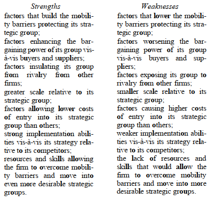 • risks of attempting to overcome mobility barriers into more desirable strategic groups or entirely new groups.