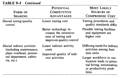 Policy choices required to facilitate sharing, then, can adversely affect the cost or differentiation of one or more of the business units involved.