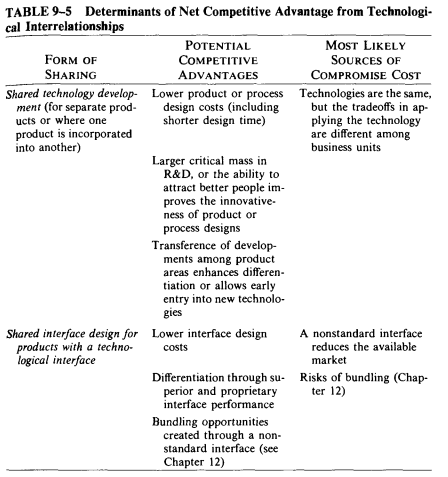 Table 9-5 shows the potential competitive advantages that can stem from sharing technology development as well as the most likely sources of compromise costs.