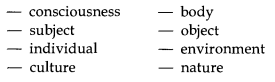 Albert Einstein took a dedicated rationalist view when he said: ‘The firm laws of logic are always valid, and nature’s laws are indifferent to our attitude’ and ‘The most incomprehensible thing about the Universe is that it is comprehensible’. Thus Einstein claimed that the world exists independent of human beings and that it is only in part comprehensible. Einstein’s pursuit of the old rationalist tradition in Western science that reality has an objective existence independent of the observer is, however, today questioned by many researchers. The multiple perspectives, issuing from the modern, relativistic science, have actualized the dualism between substance and awareness, the classic body/mind problem. Our conventional definition of self-consciousness includes totality and consistency in time and space. Such self-consciousness can be achieved only by a creative human intelligence. Quantum physics claims that consciousness per se may be seen as the particle’s mental existence in wave form defined by cooperation, interference and overlapping. It exists everywhere and has knowledge of what happens in other places. The particle’s physical existence is its permanence as matter with mass and position in space. On the basis of the above we can identify the following internal respective external opposites: