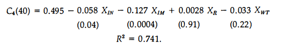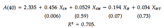 The effects on the p eriod-forty value of the Solow technology index are characterized by the following regression equation: