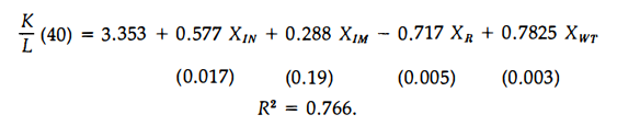 Some interesting results also come out of regression analysis of the determinants of the capital-labor ratio in year forty.