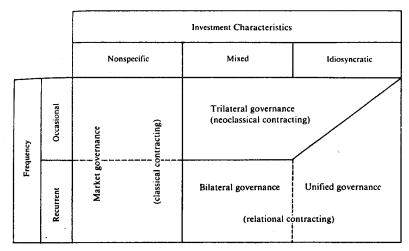 Source: Williamson Oliver E. (1998), The Economic Institutions of Capitalism, Free Press; Illustrated edition.