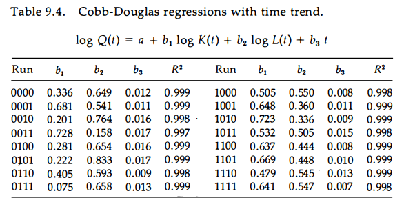 It seems interesting to ask: If a neoclassical economist believed the aggregative time saving generated by the simulation model to be real data, and tested his theory against the data, what would he conclude?