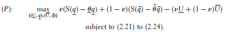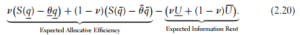 This new expression clearly shows that the principal wishes to maximize the expected social value of trade minus the expected rent of the agent. The principal is ready to accept some distortions away from efficiency in order to decrease the agent’s information rent. We see below precisely how.