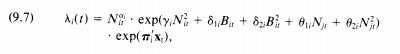 In developing qualitative implications of these models, we use the fact that their multiplicative structure allows them to be expressed as a product of several terms. When focusing on the effects of density, we refer to the multiplier of the rate due to the effect of density. For example, equation 9.6a can be written as: