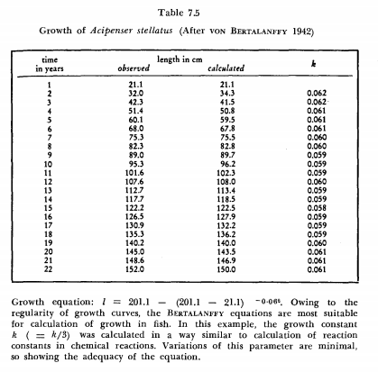 The consequence is that curve-fitting may be an indoor sport and useful for purposes of interpolation and extrapolation. However, approximation of empirical data is not a verification of particular mathematical expressions used. We can speak of verification and of equations representing a theory only if (1) the parameters occurring can be confirmed by independent experiment; and if (2) predictions of yet unobserved facts can be derived from the theory. It is in this sense that I am going to discuss the so-called Bertalanffy growth equations because, to the best of my knowledge, they are the only ones in the field which try to meet the specifications just mentioned.