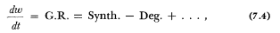 i.e., growth in weight is represented by the difference between processes of synthesis and degeneration of its building materials, plus any number of indeterminate factors that may influence the process. Without loss of generality, we may further assume that the terms are some undefined functions of the variables concerned: