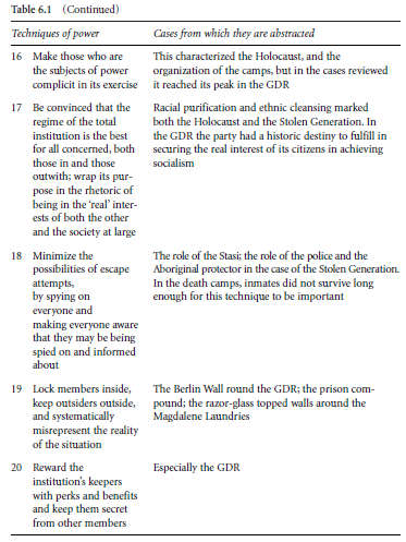 Table 6.1 Twenty ways of constructing total institutional power relations
