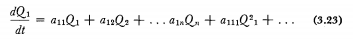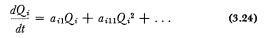 (4) There is a further case which appears to be unusual in physical systems but is common and basic in biological, psychological and sociological systems. This case is that in which the interactions between the elements decrease with time. In terms of our basic model equation (3.1), this means that the coefficients of the Qi. are not constant, but decrease with time. The simplest case will be:
